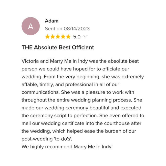 Book a small wedding in Marion or Hamilton County for just $150.