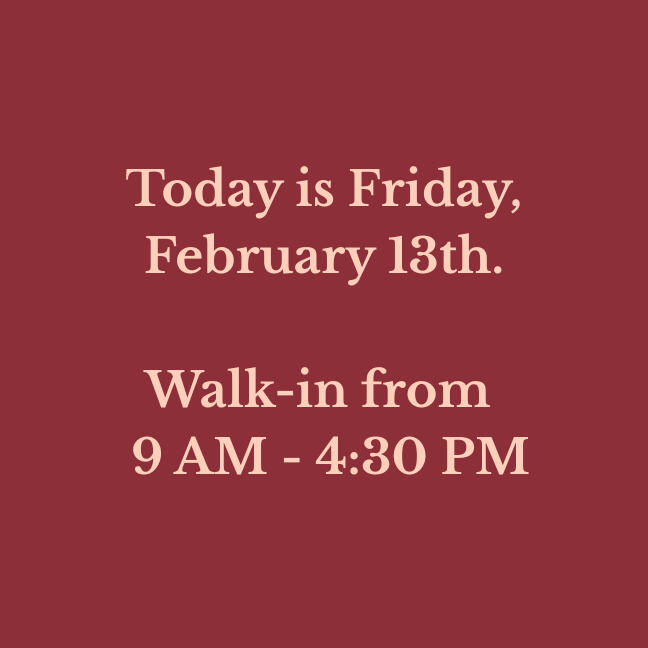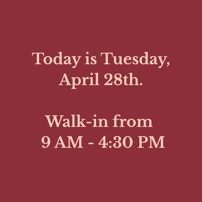 Walk-in hours are updated daily. Check to verify before you drive!